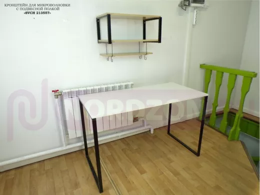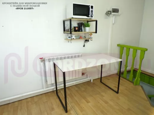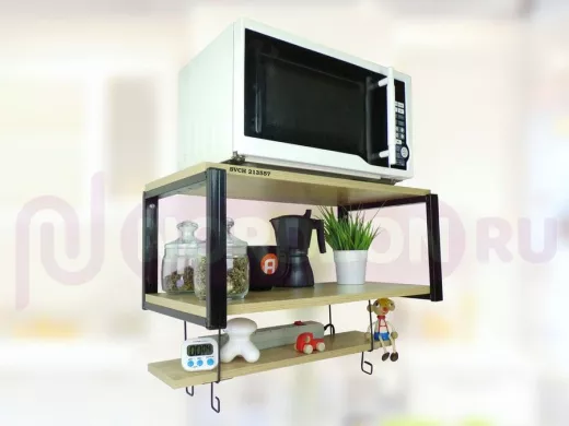 - Полка надежно крепится к стене при помощи анкеров или шурупов с дюбелями, на ней можно разместить микроволновую печь, кофемашину, тостер идр.кухонную технику, посуду, специи, различные необходимые мелочи