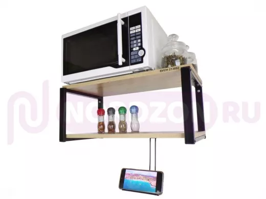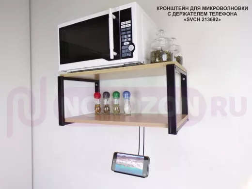 Полка для микроволновой печи с держателем телефона, 27см черный "SVCH 213692", 60х30, дуб сонома