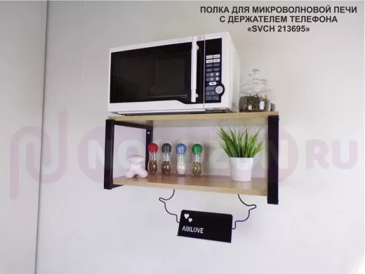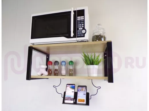 Полка для микроволновой печи с держателем телефона, 27см черный "SVCH 213695", 60х30, дуб сонома