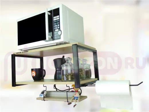 Заказать звонокПолка для микроволновки 60x30см с подвеской 40x15см, 27см, черный "SVCH 213580" , дуб ,с держателем