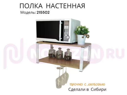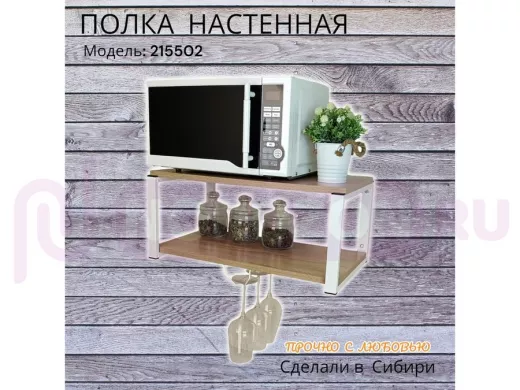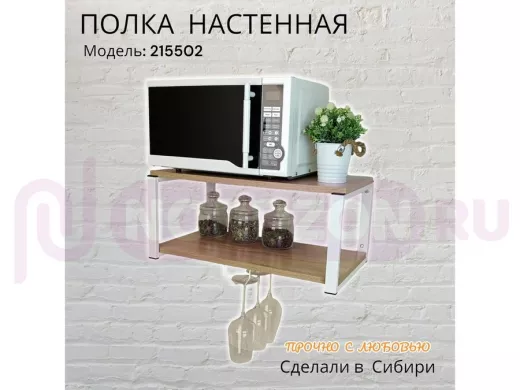 Полка c одним бокалодержателем для микроволновки "SVCH 215502" 60х30см, белая, дуб сонома