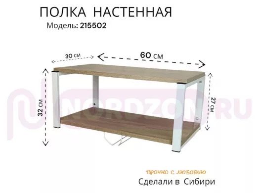 - Размер поверхности полки 30 х 60 см