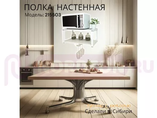 Заказать звонокПолка c одним бокалодержателем для микроволновки "SVCH 215503" 60х30см, белая, белый