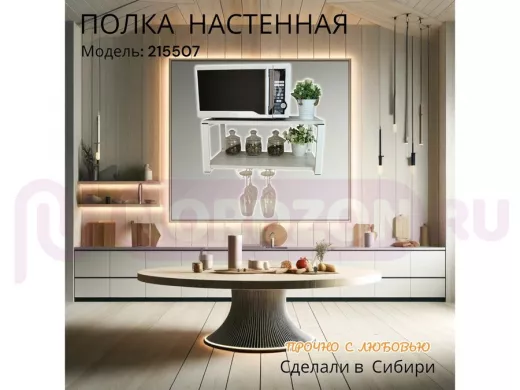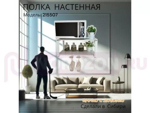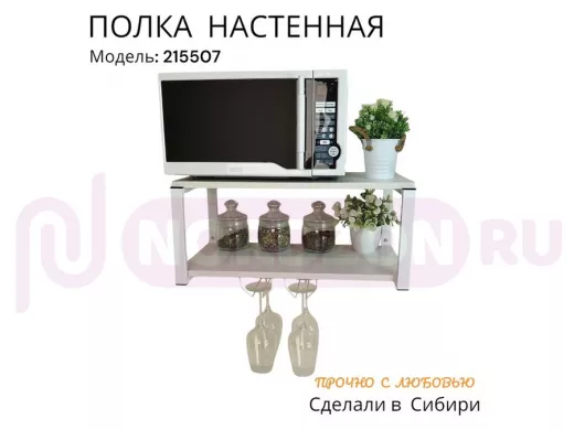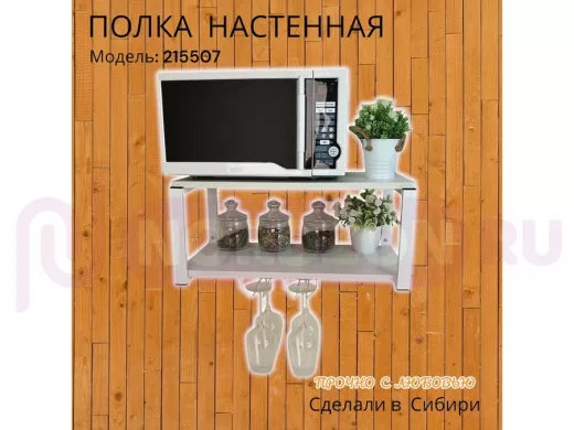 Заказать звонокПолка c двумя бокалодержателем для микроволновки "SVCH 215507" 60х30см, белая, сосна выбеленная
