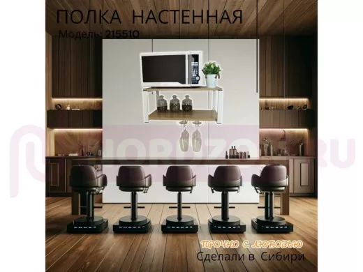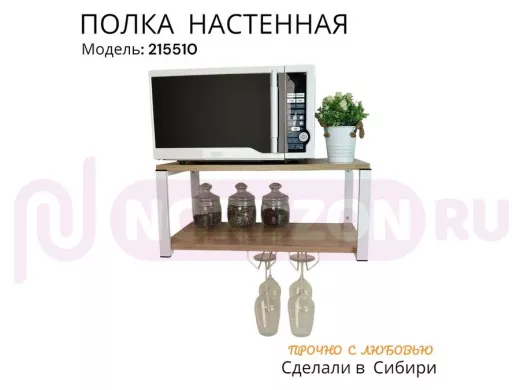 Заказать звонокПолка c двумя бокалодержателем для микроволновки "SVCH 215510" 60х30см, белая, дуб сонома