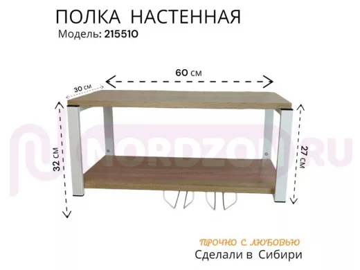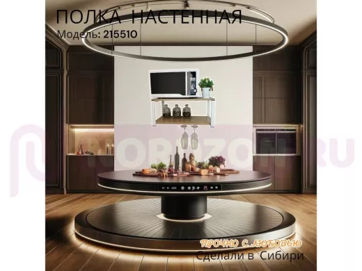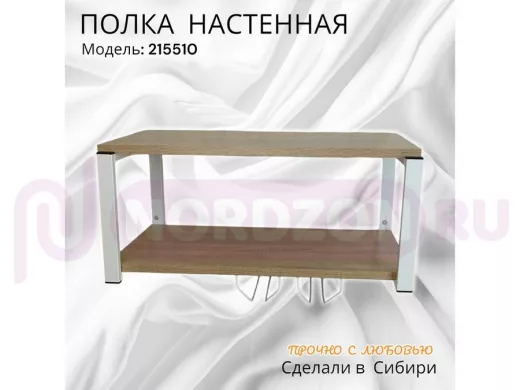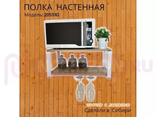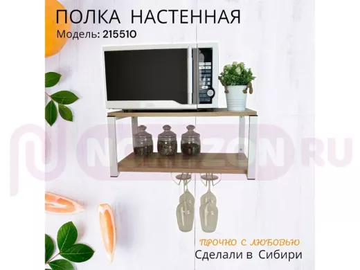 Полка c двумя бокалодержателем для микроволновки "SVCH 215510" 60х30см, белая, дуб сонома