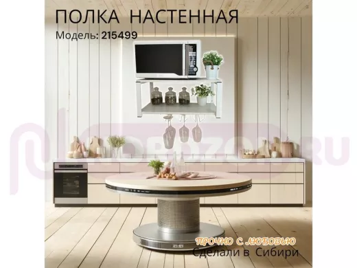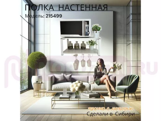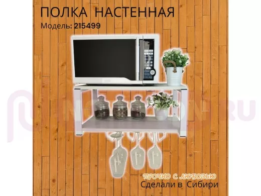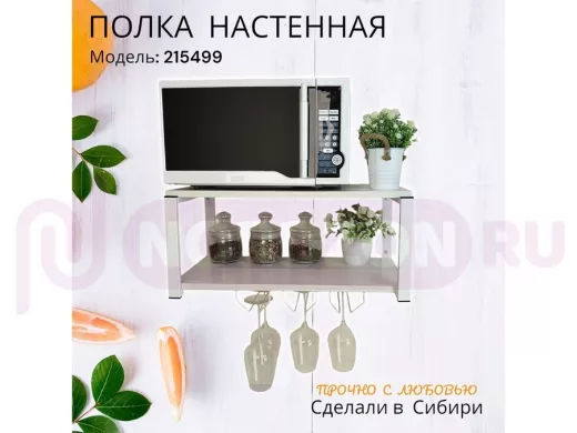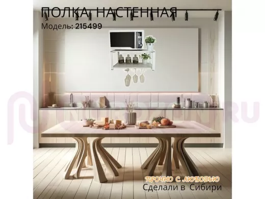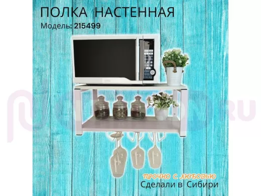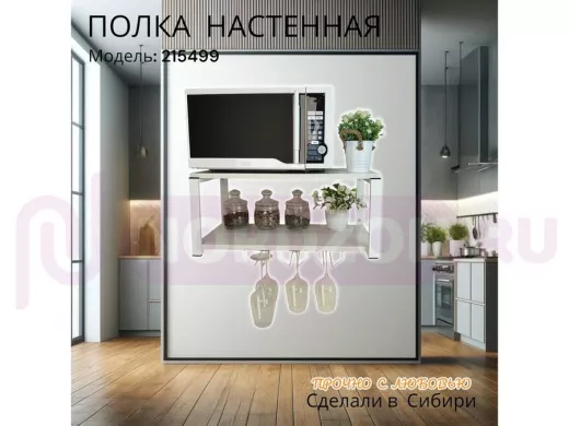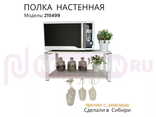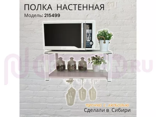 Заказать звонокПолка c тремя бокалодержателями для микроволновки "SVCH 215499" 60х30см, белая, сосна выбеленная