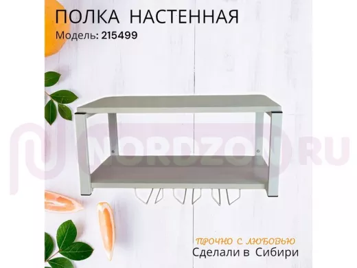 Полка c тремя бокалодержателями для микроволновки "SVCH 215499" 60х30см, белая, сосна выбеленная