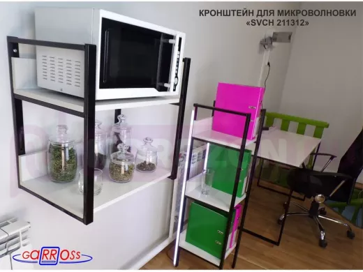 Заказать звонокКронштейн для микроволновки, 54см чёрный "SVCH 211312" две полки 35х54см с бортиком,сосна выбеленная