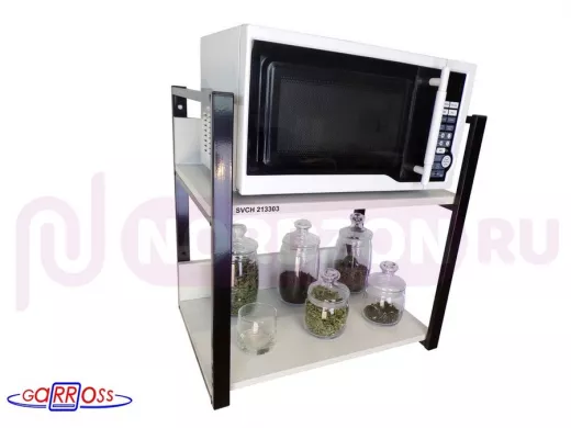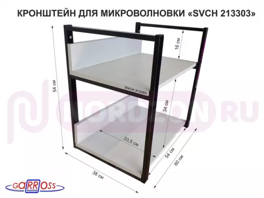 Кронштейн для микроволновки, высота, 54см черный "SVCH 213303" две полки 35х60см со стенками, сосна