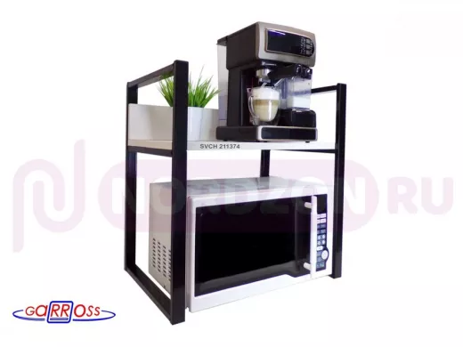 Универсальная подставка для бытовой техники (микроволновой печи, кофемашины, тостера, электрического чайника и др) позволяет эффективно использовать место на столе.