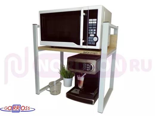 Универсальная подставка для бытовой техники (микроволновой печи, кофемашины, тостера, электрического чайника и др) позволяет эффективно использовать место на столе.
