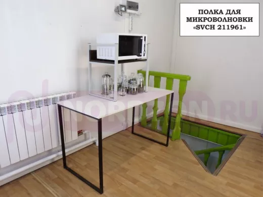 Универсальная подставка для бытовой техники (микроволновой печи, кофемашины, тостера, электрического чайника и др) позволяет эффективно использовать место на столе.