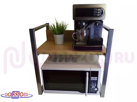 Универсальная подставка для бытовой техники (микровоновой печи, кофемашины, тостера, электрического чайника и др) позволяет эффективно использовать место на столе.