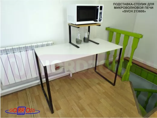 Универсальная подставка для микроволновой печи позволяет эффективно использовать место на столе.