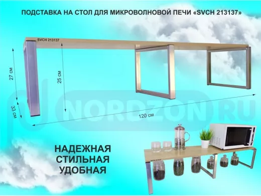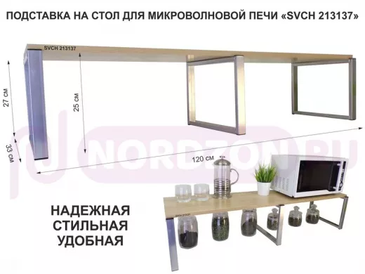 Заказать звонокПодставка на стол для микроволновой печи, высота 27см, серебр "SVCH 213137" полка 120х30см, дуб соно