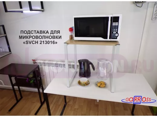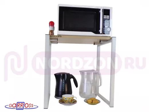 - Универсальная подставка для бытовой техники (микровоновой печи, кофемашины, тостера, электрического чайника и др) позволяет эффективно использовать место на столе.