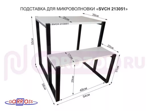 Заказать звонокПодставка для микроволновки, черный, 55см "SVCH 213051" с двумя уровнями 55 и 31 см,сосна выбеленная