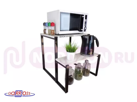 - Универсальная подставка для бытовой техники (микровоновой печи, кофемашины, тостера, электрического чайника и др) позволяет эффективно использовать место на столе.