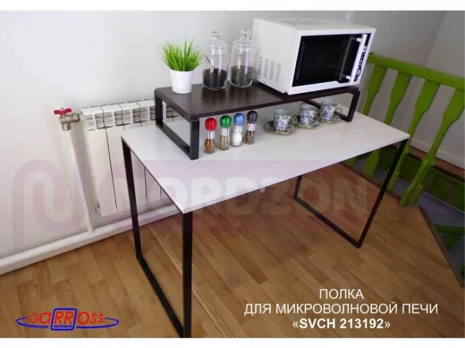 - Универсальная подставка для микровоновой печи позволяет эффективно использовать место на столе.