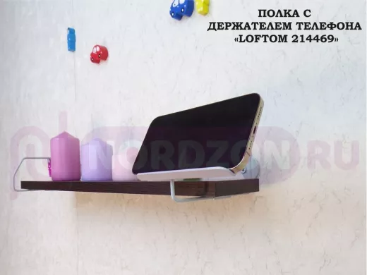 Заказать звонокПолка с держателем телефона, серый "LOFTOM 214469" полка 54х10 см, венге