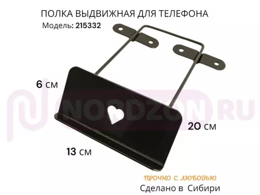 Заказать звонокПолка для телефона стальной прочный выдвижной держатель "ABILOVE 215332" черный 6х13,5х20 см