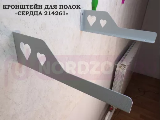 Заказать звонокКронштейн "СЕРДЦА 214261" для полок, левый 30x8 см , 7 отверстий 7 мм, серый