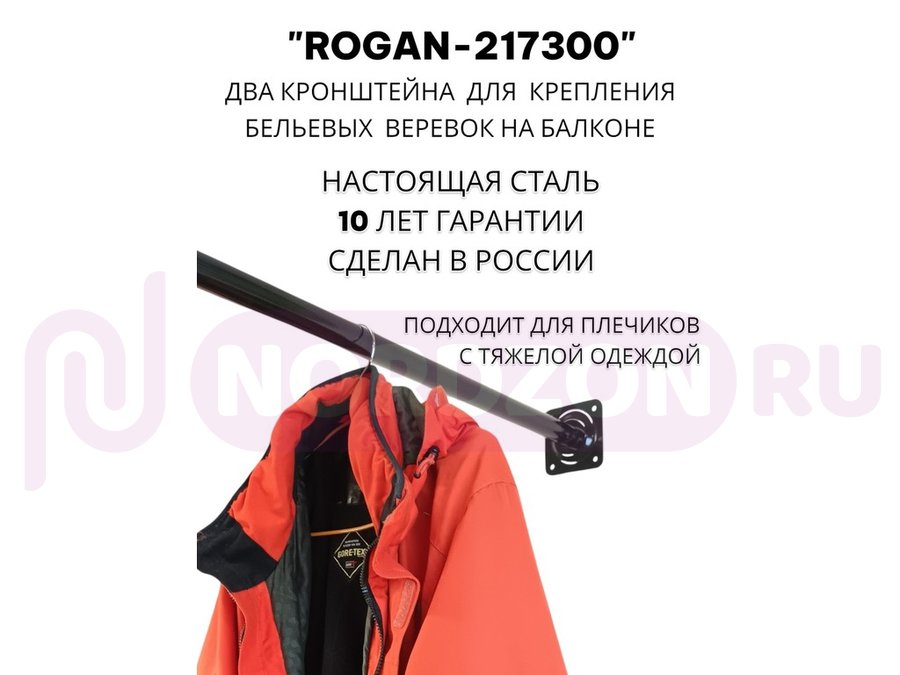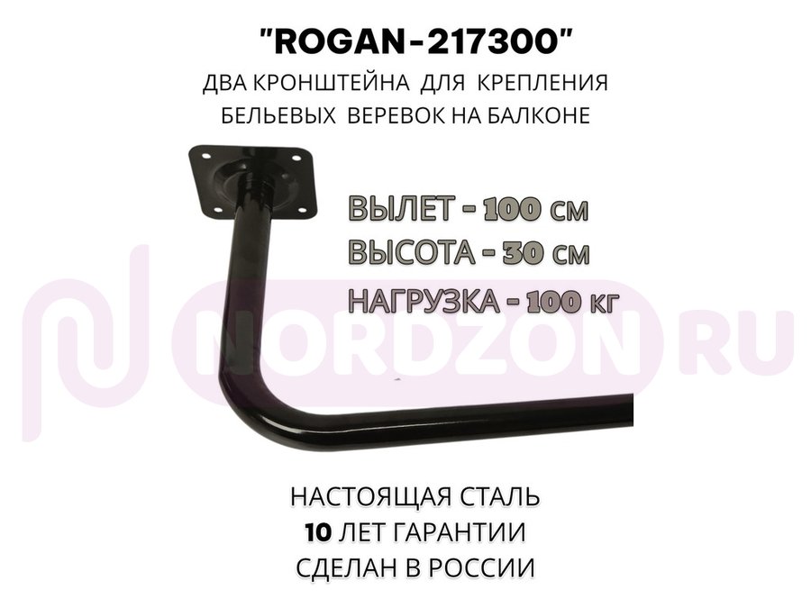 Заказать звонокСушилка для белья под веревки, 2 кронштейна, длина 100см, вылет 30см "ROGAN-217300" черный, 32мм
