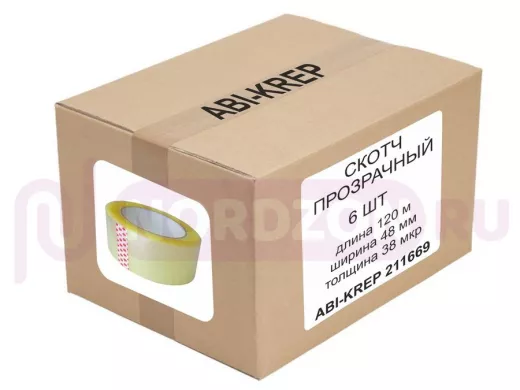 Заказать звонокСкотч упаковочный 48мм х120метров "ABI-KREP 211729" (набор 6шт) клейкая лента, прозрачная,толщ.38мкр