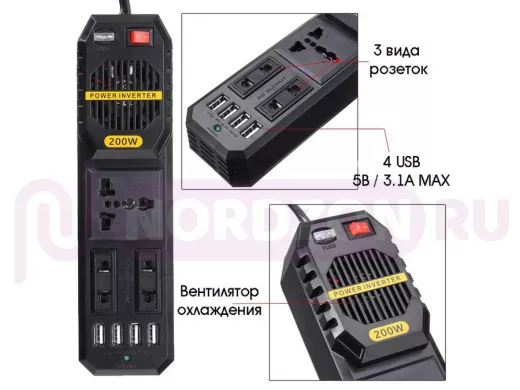 Заказать звонокTDS TS-CAU42 автомобильный инвертор (220В/200Вт)