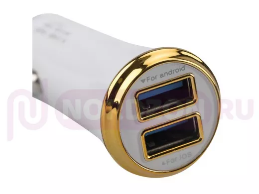 Автозарядка в прикуриватель 2хUSB с индикацией (АЗУ) (1000+2100 mA) белая REXANT