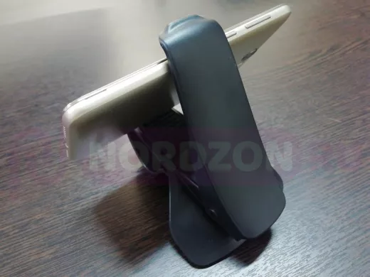 Прорезиненные части держателя защищают телефон и место установки, от царапин и повреждений. Телефон держится надёжно, не скользит и не выпадает. Держатель позволяет выставить оптимальный угол наклона, благодаря рельефным пазам на прорезиненных вкладках.