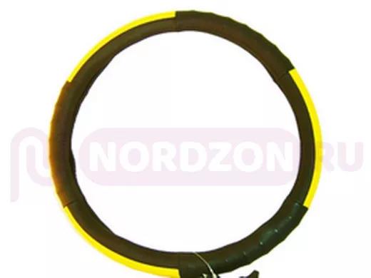 Оплетка на руль 38 см. M 4740B кожа черная+желтый пластик