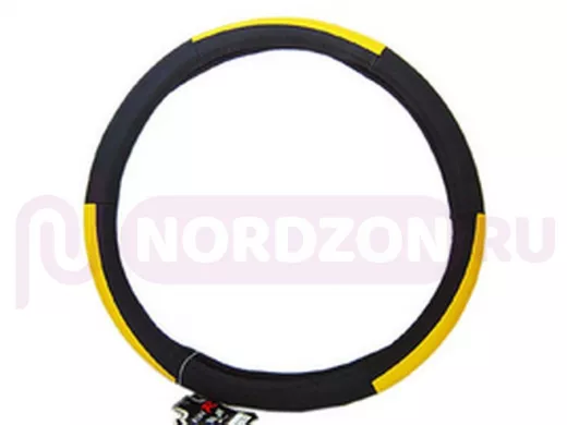 Оплетка на руль 38 см. M 4773E кожа черная+желтая кожа вставка сверху "гладкая"
