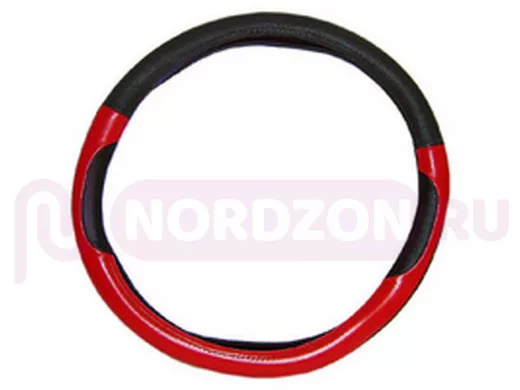 Оплетка на руль 38 см. M 7206 кожа черная+красная кожа "спорт" "гладкая"