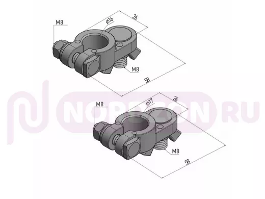 Клемма аккумуляторной батареи автомобиля (АКБ) универсальная REXANT