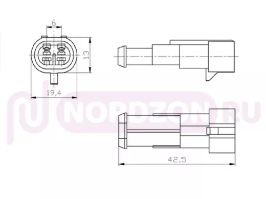 разъем (розетка) серии 7021 с проводом (пара) |