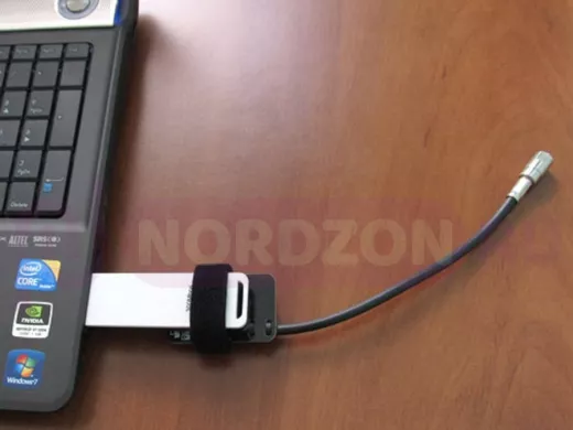 - Для подключения расположить адаптер вплотную к корпусу модема или телефона. Зафиксировать это положение свободным концом стяжки. Адаптер подключить к кабелю снижения внешней антенны с помощью вилки FME.