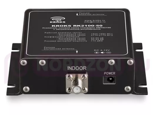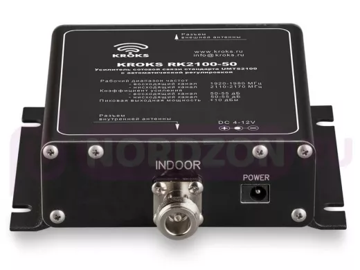 KROKS RK2100-50 — это маломощный репитер 3G-сигнала с коэффициентом усиления 50 дБ и максимальной выходной мощностью 10 дБм (10 мВт).
