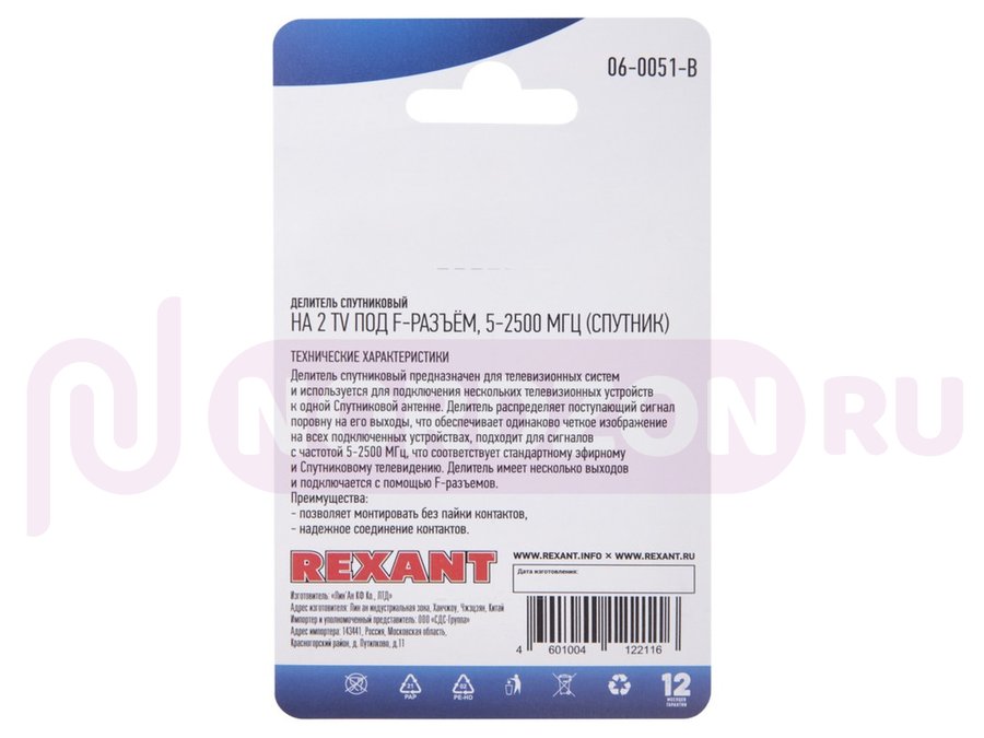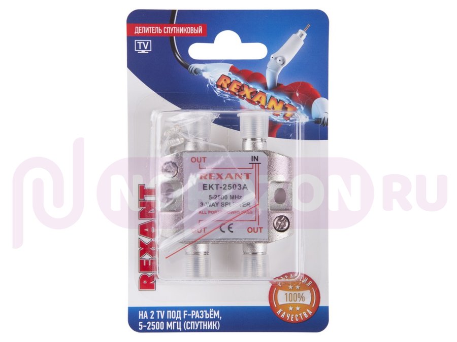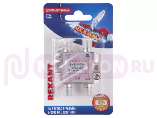 Заказать звонокДелитель спутниковый F-типа на 3 TV, 5-2500 МГц REXANT