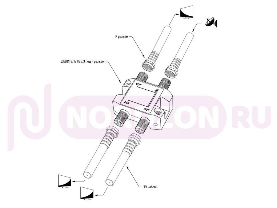 Делитель спутниковый предназначен для телевизионных систем и используется для подключения нескольких телевизионных аппаратов к одной Спутниковой антенне. Делитель распределяет поступающий сигнал поровну на его выходы, что обеспечивает одинаково четкое изображение на всех подключенных устройствах, подходит для сигналов с частотой 5-2500 МГц, что соответствует стандартному эфирному и Спутниковому телевидению. Делитель имеет несколько выходов и подключается с помощью F-разъемов.