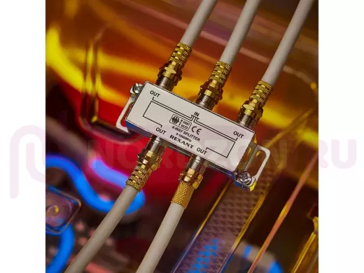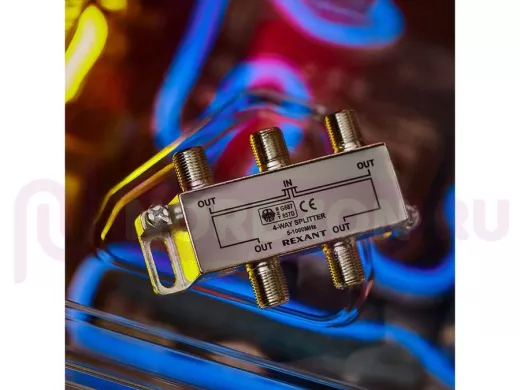 Телевизионный делитель это удобное средство для разделения сигнала на несколько равных частей. Антенные делители, также называемые телевизионные сплиттеры ,часто используются когда требуется подключить один телевизионный кабель, идущий от антенны, сразу к нескольким телевизорам. Особенно это актуально в многокомнатных квартирах или многокомнатных загородных домах. Делитель имеет один вход под F разъем и четыре выхода, также под F разъемы. Сигнал, подающийся на вход делителя, делится на четыре равные части и передается на выходы. Для подключения кабелей используются стандартные F-разъемы. Полоса пропускания делителя от 5 до 1000МГц, эти частоты используются для стандартного эфирного телевидения. Качественно изготовленный ТВ сплиттер REXANT долго и надежно прослужит в составе телевизионной системы, делая удобной эксплуатацию нескольких телевизоров.