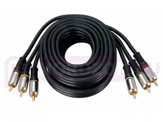 Шнур 3RCA Plug - 3RCA Plug 1.5М (GOLD) - металл REXANT предназначен для передачи аналогового видео и аудиосигнала (STEREO) и широко применяется для профессиональных теле и аудиосистем. С обеих сторон шнура располагаются по три металлических зажимных штекера разъема RCA (традиционный стандарт для аналоговой видео и аудиотехники). Такие разъемы повысят надежность соединения в несколько раз. Шнур используется для совместной эксплуатации домашней и профессиональной аудиоаппаратуры (электронные музыкальные инструменты, усилители звука, телевизоры, видеомагнитофоны, ресиверы, спутниковые ресиверы и т.д.), с разъемами такого типа. Контакты разъемов имеют золотое напыление для улучшения качества передачи сигнала. Длина шнура составляет 1.5 метра. Профессиональный уровень надежности достигается благодаря применению качественных материалов и высокотехнологичного уровня исполнения шнура.