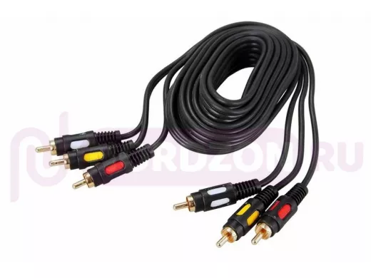 Шнур 3RCA Plug - 3RCA Plug 1.5М (GOLD) REXANT предназначен для передачи аналогового видео и аудиосигнала (STEREO) и широко применяется для профессиональных теле и аудиосистем. С обеих сторон шнура располагаются по три штекера разъема RCA (традиционный стандарт для аналоговой видео и аудиотехники). Шнур используется для совместной эксплуатации домашней и профессиональной аудиоаппаратуры (электронные музыкальные инструменты, усилители звука, телевизоры, видеомагнитофоны, ресиверы, спутниковые ресиверы и т.д.), с разъемами такого типа. Контакты разъемов имеют золотое напыление для улучшения качества передачи сигнала. Длина шнура составляет 1.5 метра. Профессиональный уровень надежности достигается благодаря применению качественных материалов и высокотехнологичного уровня исполнения шнура.