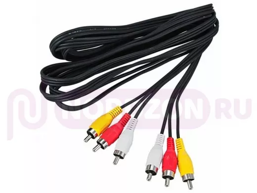 Шнур 3х3 RCA 7 м REXANT предназначен для одновременной передачи аналогового видео- и аудиосигнала (STEREO) и широко применяется для теле- и аудиосистем. С обеих сторон шнура располагаются по три штекера разъема RCA (традиционный стандарт для аналоговой видео- и аудиотехники).