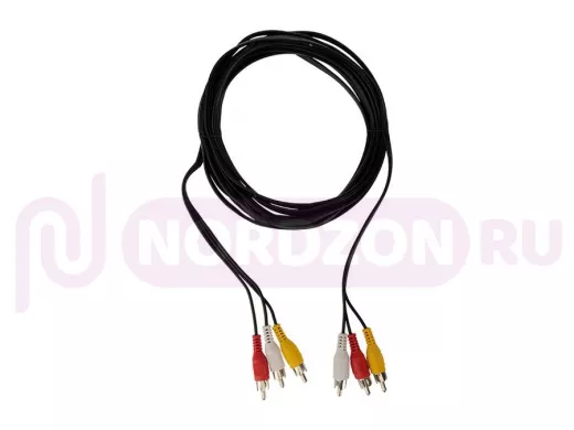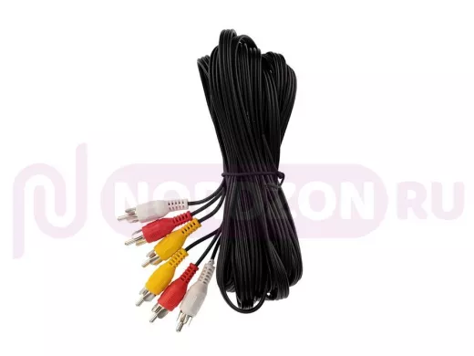 Шнур 3х3 RCA 5М REXANT предназначен для одновременной передачи аналогового видео и аудиосигнала (STEREO) и широко применяется для теле и аудиосистем. С обеих сторон шнура располагаются по три штекера разъема RCA (традиционный стандарт для аналоговой видео и аудиотехники). Шнур используется для совместной эксплуатации домашней и профессиональной аудиоаппаратуры (электронные музыкальные инструменты, усилители звука, телевизоры, видеомагнитофоны, ресиверы, спутниковые ресиверы и т.д.), с разъемами такого типа. Разъемы выполнены из лёгкого и прочного пластика, а контакты никелированы. Длина шнура составляет 5 метров.