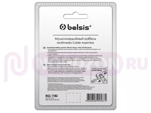 Заказать звонокКабель микро USB (AM/microBM) BGL1182 5pin красно-белый, кабель-рулетка