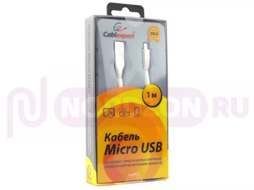 Заказать звонокКабель микро USB (AM/microBM) 1.0 м Cablexpert CC-G-mUSB01W-1M, USB 2.0 ,серия Gold, белый