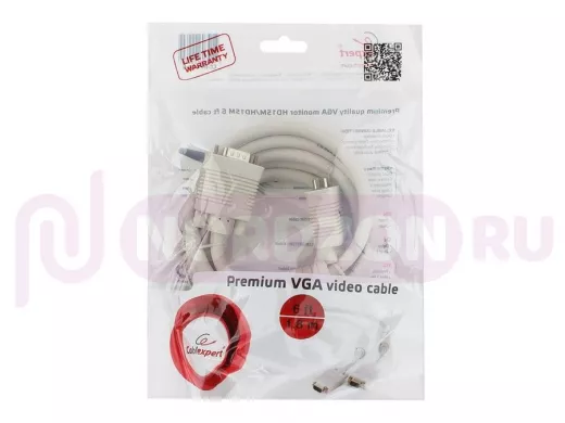 Заказать звонокШнур VGA штекер / VGA штекер длина 1,8 метра Premium Cablexpert CC-PPVGA-6, тройной экран,ферриты