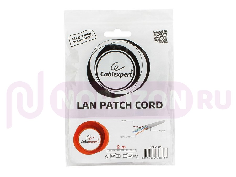 Заказать звонокПатч-корд Cablexpert PP6U-2M кат.6, 2м, UTP литой, многожильный (серый) PP6U-2M